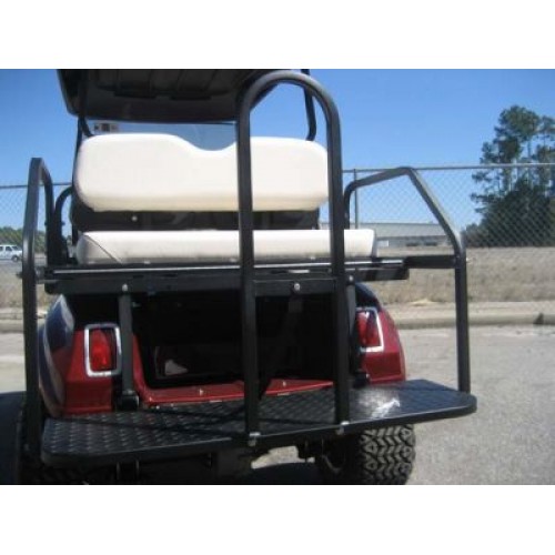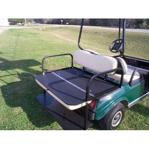 All of our seat kits are built to last. They are 100% built in USA and use marine grade vinyl seat cushions . You can even choose from 3 colors of cushions. Everybody loves to go for a ride and this doubles the seating capacity of a standard golf cart. Plus just give it a flip and it doubles as a tough little flat bed. Heavy duty steel tube construction is powder coated black.